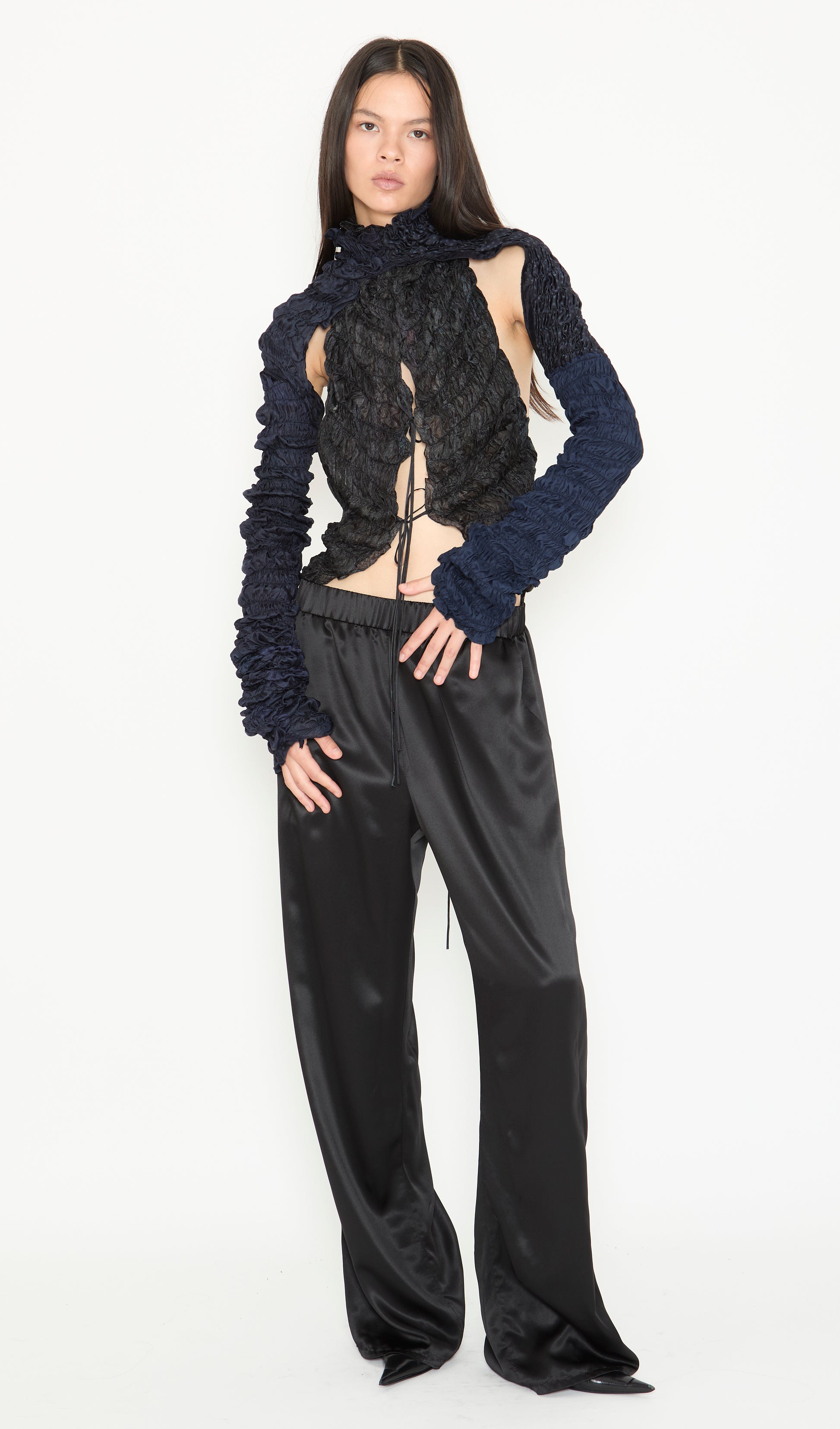 Slim-fit turtleneck 6 full length sleeves bolero top, stretchy and flexible in size. This is an upcycled product, please note that coloration and finishings may vary.