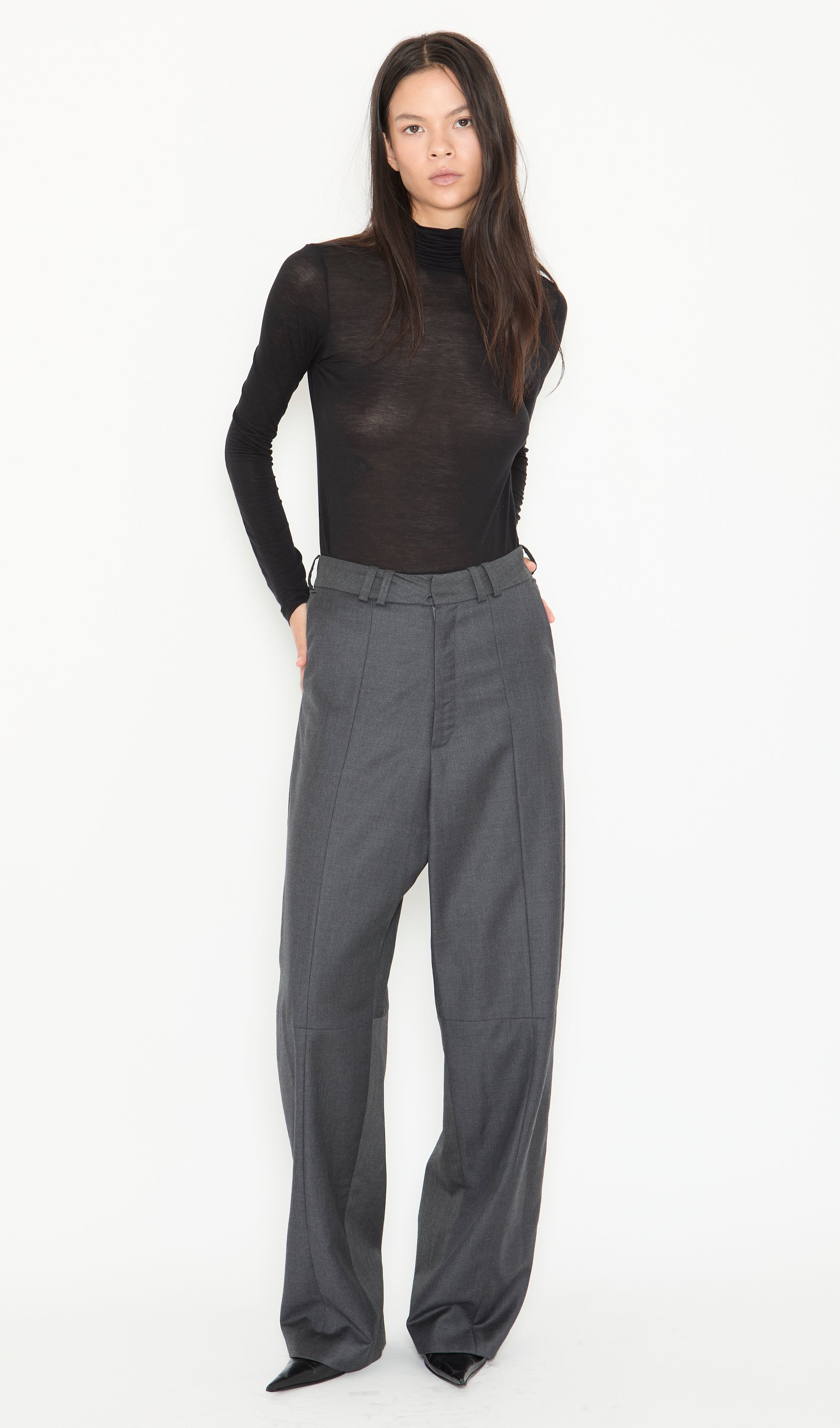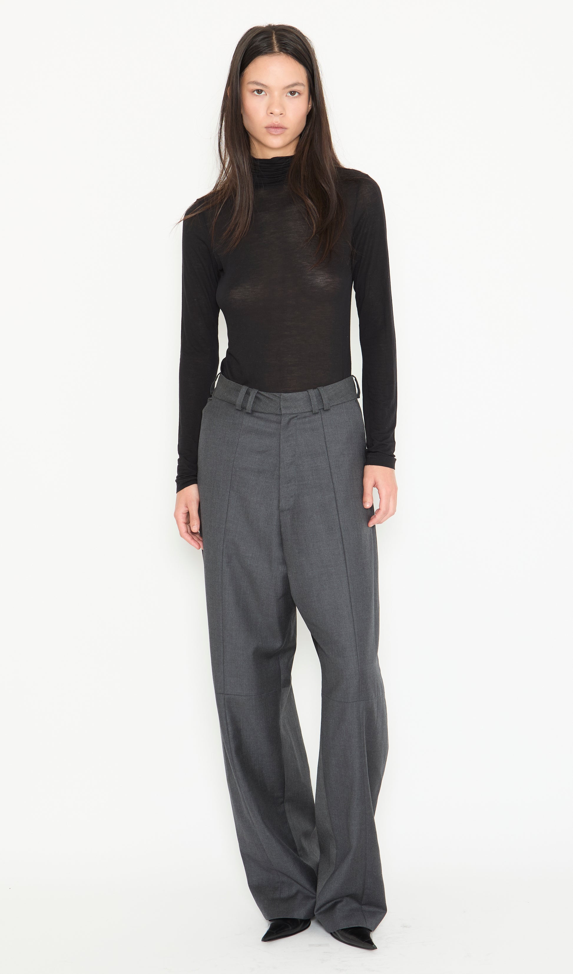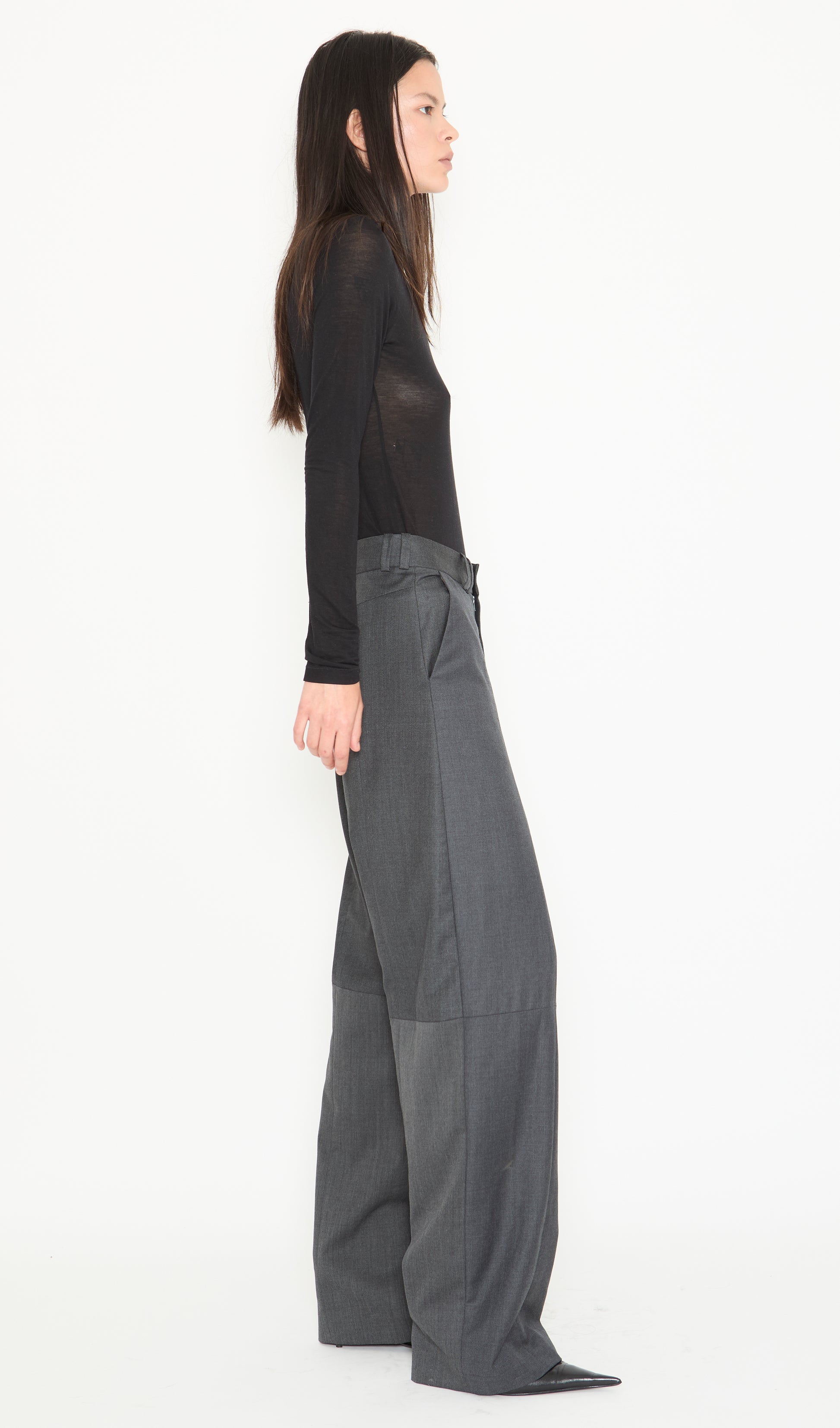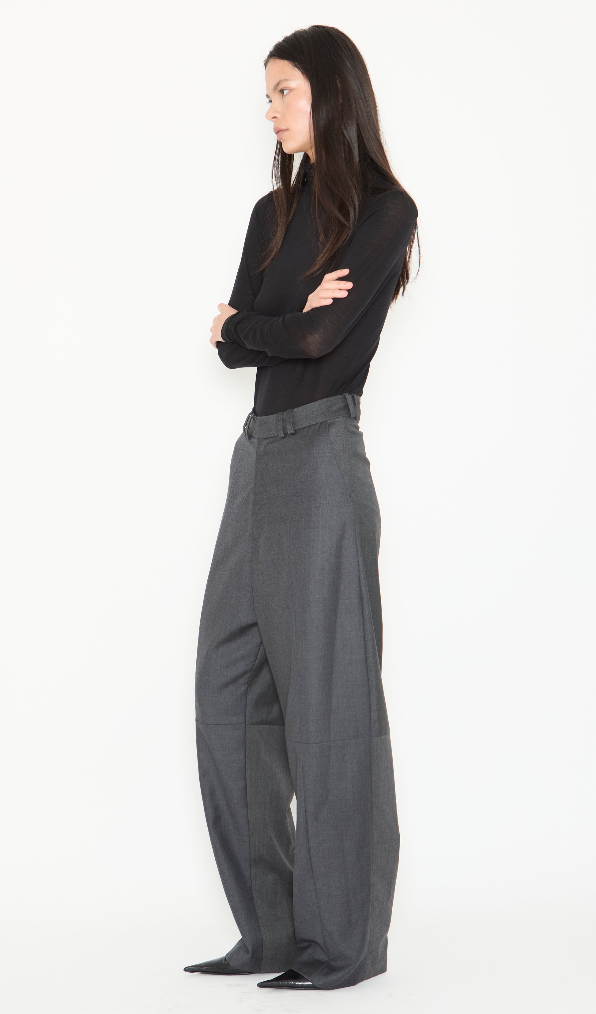 Loose fit, slightly elongated trousers made from upcycled fine wool. Features double belt loops, side pockets and front half lining. This is an upcycled product, please note that coloration and finishings may vary.