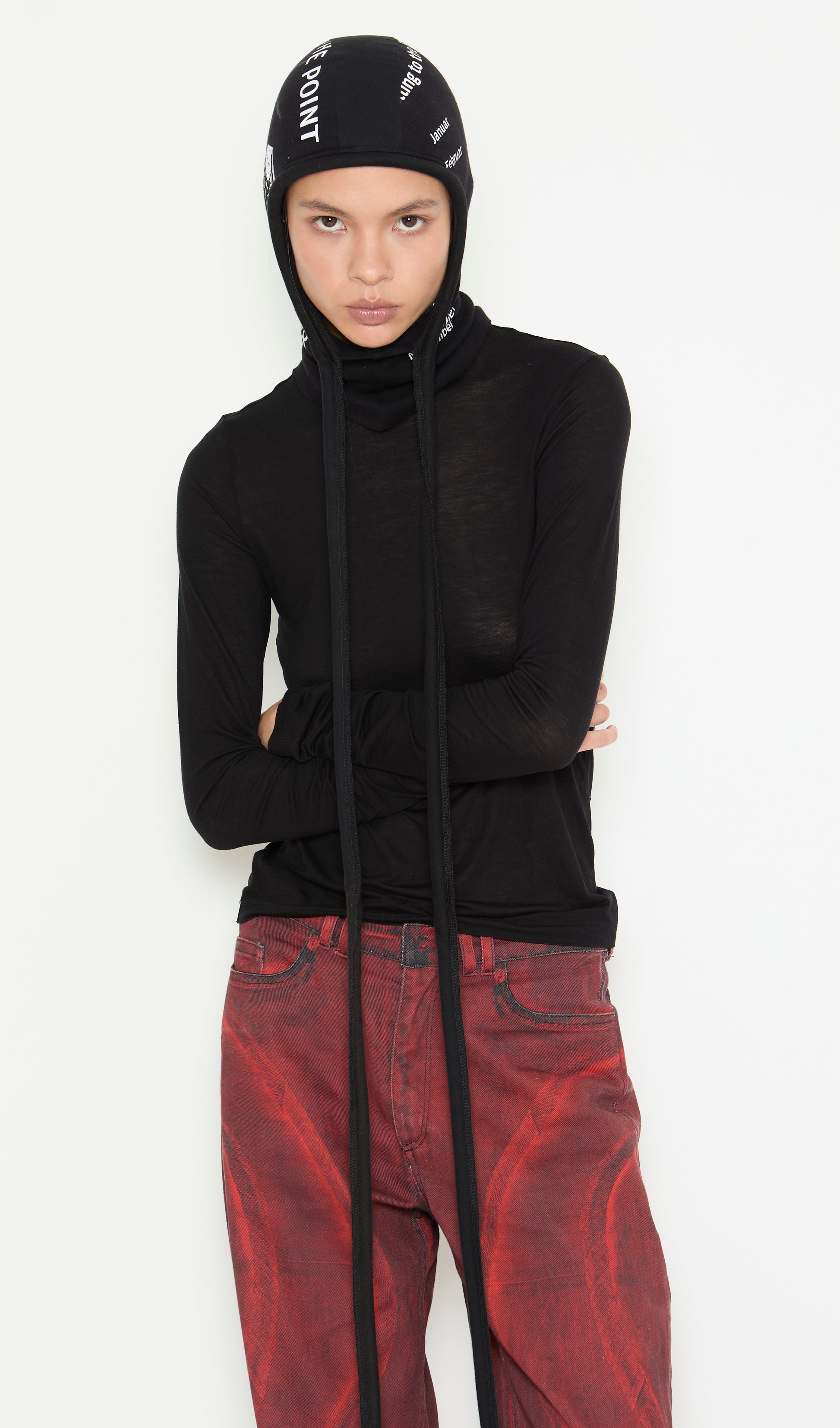 Tight-fit hood with piping detail. This is an upcycled product, please note that coloration and finishings may vary.