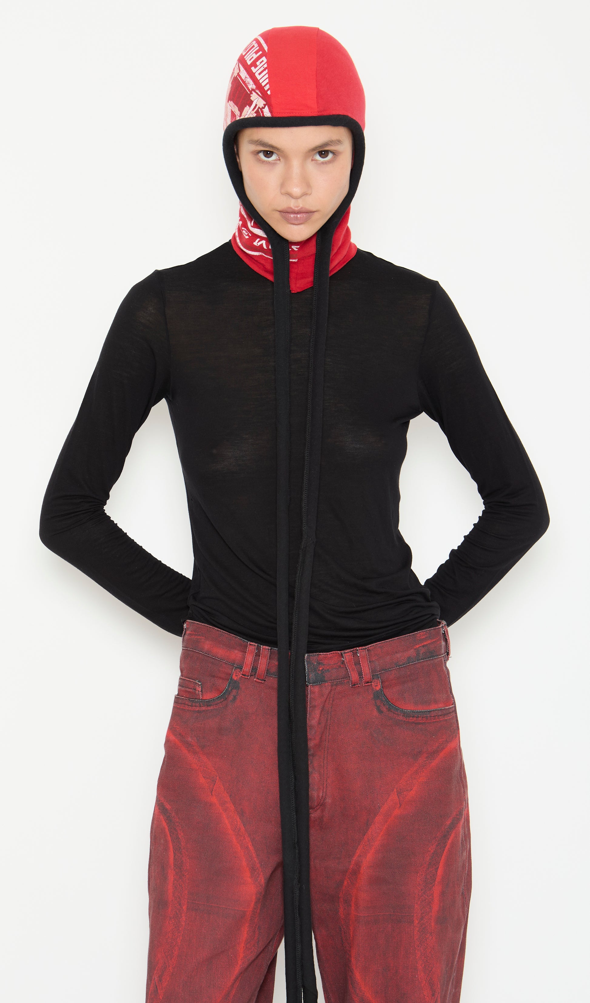 Tight-fit hood with piping detail. This is an upcycled product, please note that coloration and finishings may vary.